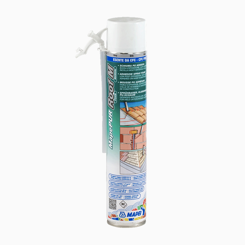 Disponível para a aplicação a pistola (MAPEPUR ROOF FOAM G) com especifico equipamento MAPEPUR GUN Standard e para aplicação manual (MAPEPUR ROOF FOAM M).