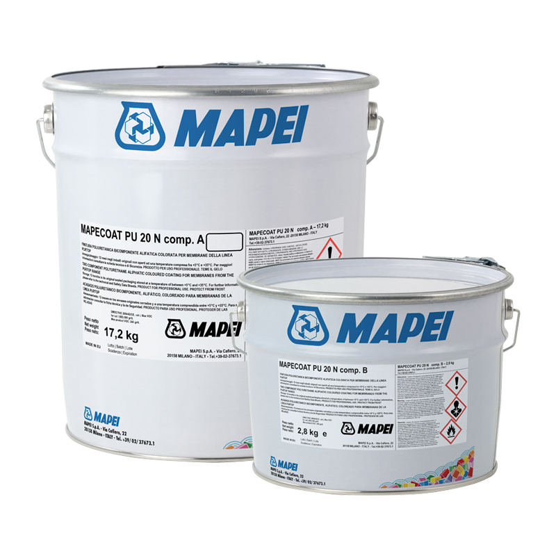 Embalagens: kit de 20 kg comp. A 17,2 kg e comp. B 2,8 kg; kit da 5 kg comp. A 4,3 kg e comp. B 0,8 kg.