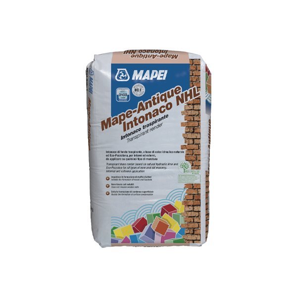 O Mape-Antique Intonaco NHL é uma argamassa pré-misturada em pó para rebocos, composto por cal hidráulico natural (NHL) e Eco-Pozolana, areias naturais, aditivos especiais e microfibras.